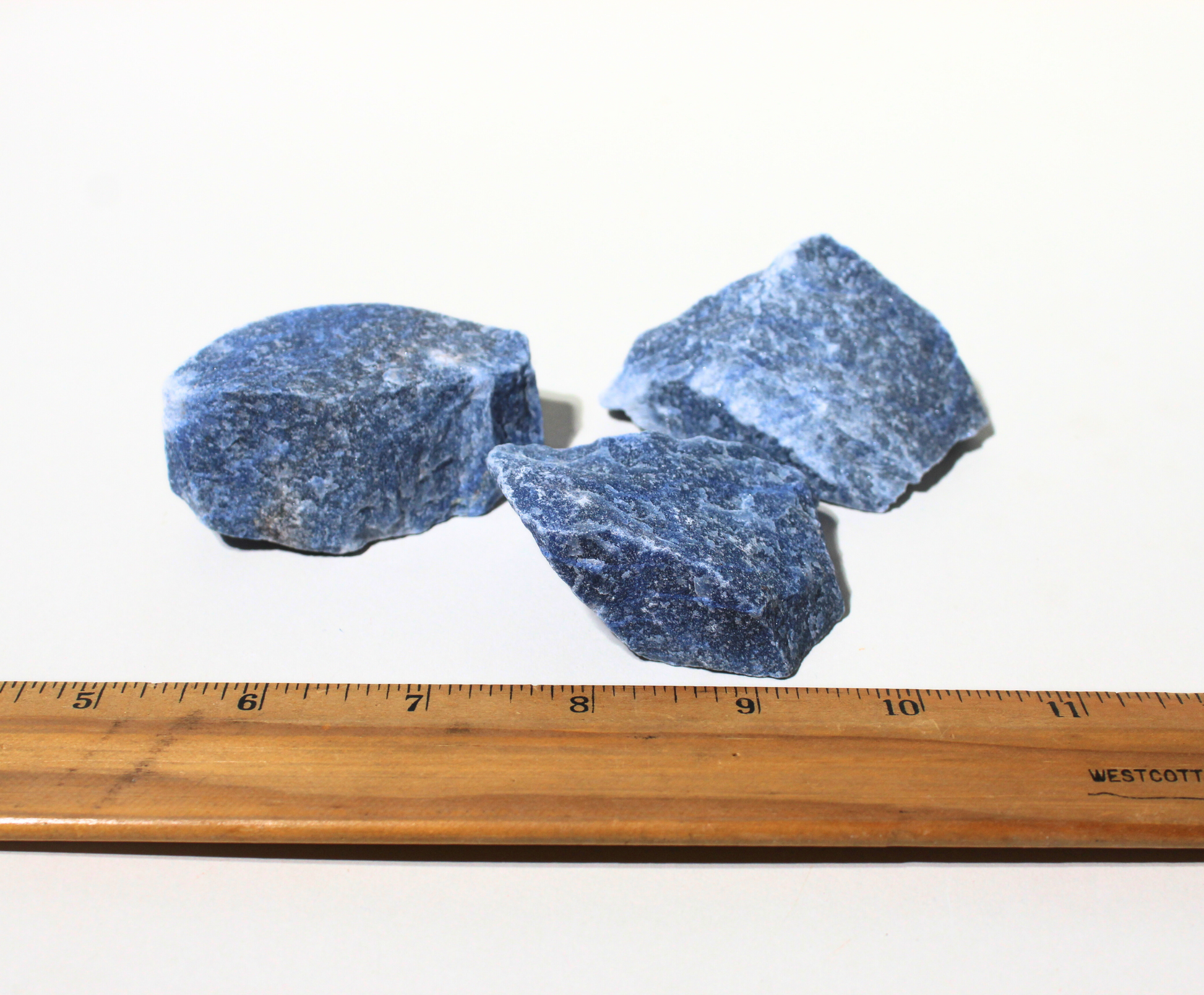 Use the drop-down to select either 1/2 Pound, 1 Pound, 3 Pound, 5 Pounds or 11 Pounds of large rough Blue Quartz stones! The photos are representative of the stones you will receive and are shown dry and wet to give you a better idea of the color and how the rocks will look once polished vs before.