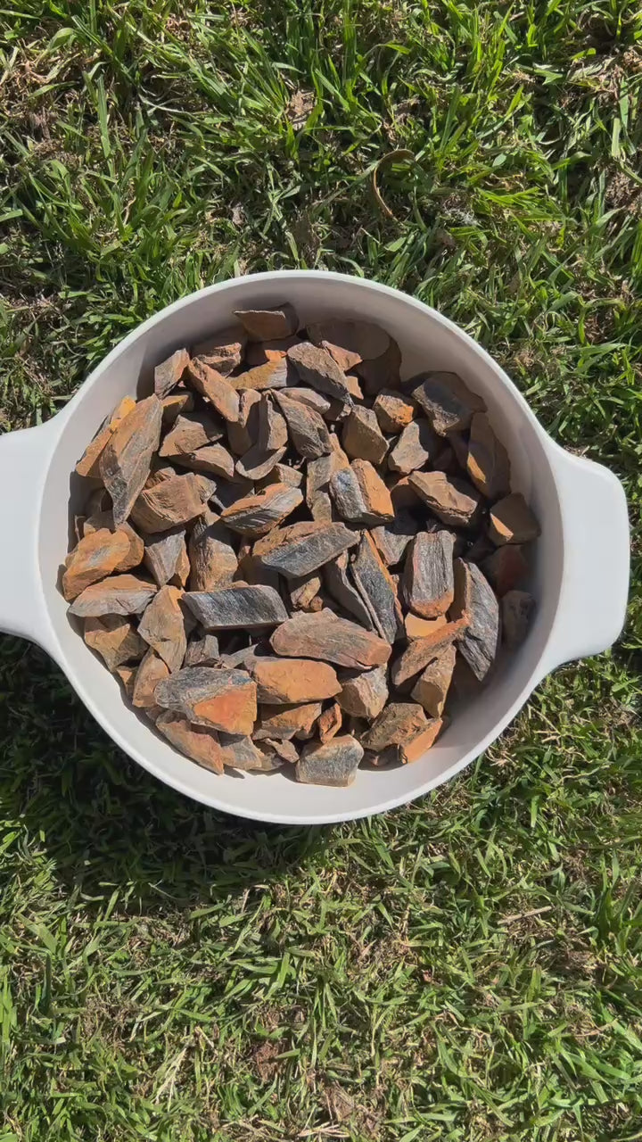 This listing is for Blue Tiger's Eye from South Africa. This is a fun twist on the classic gold tiger's eye, with a consistent blue shimmering face and ridges. Use the dropdown to select either 1/2 LB, 1 LB or 3 LBs of Blue Tiger's Eye!