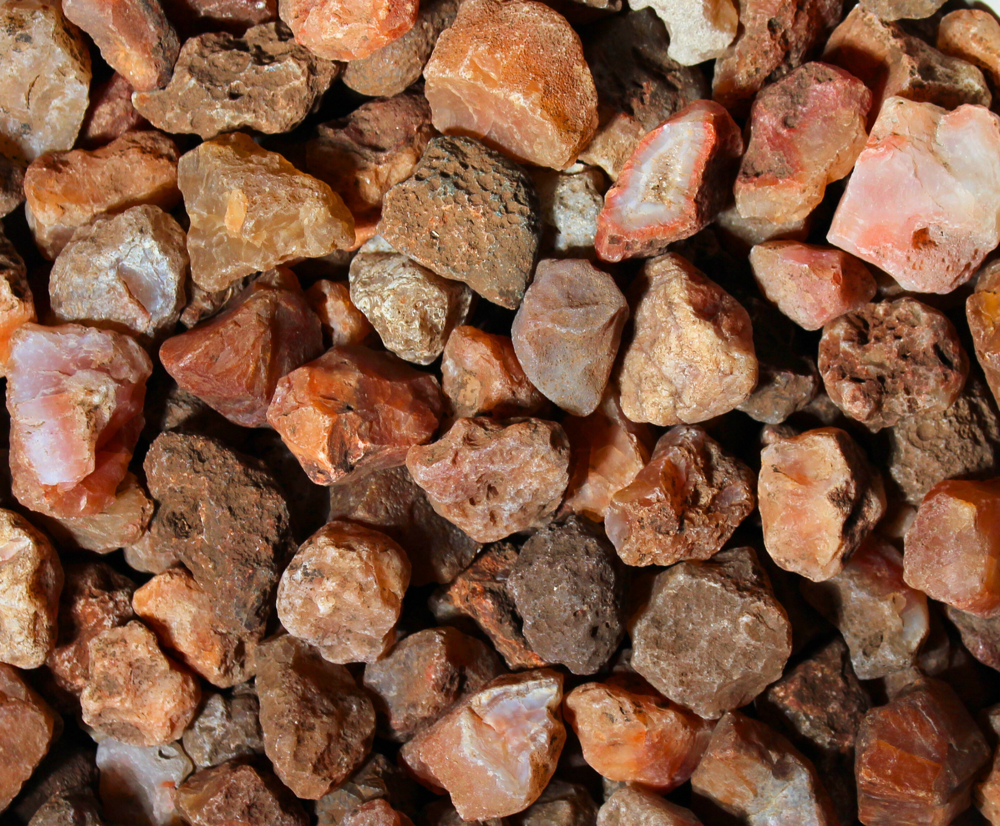 Use the dropdown to select either 1/2 pound, 1 pound or 3 pounds of rough Carnelian stones! The photos are representative of the stones you will receive and are shown wet to give you a better idea of the color and how the rocks will look once polished.