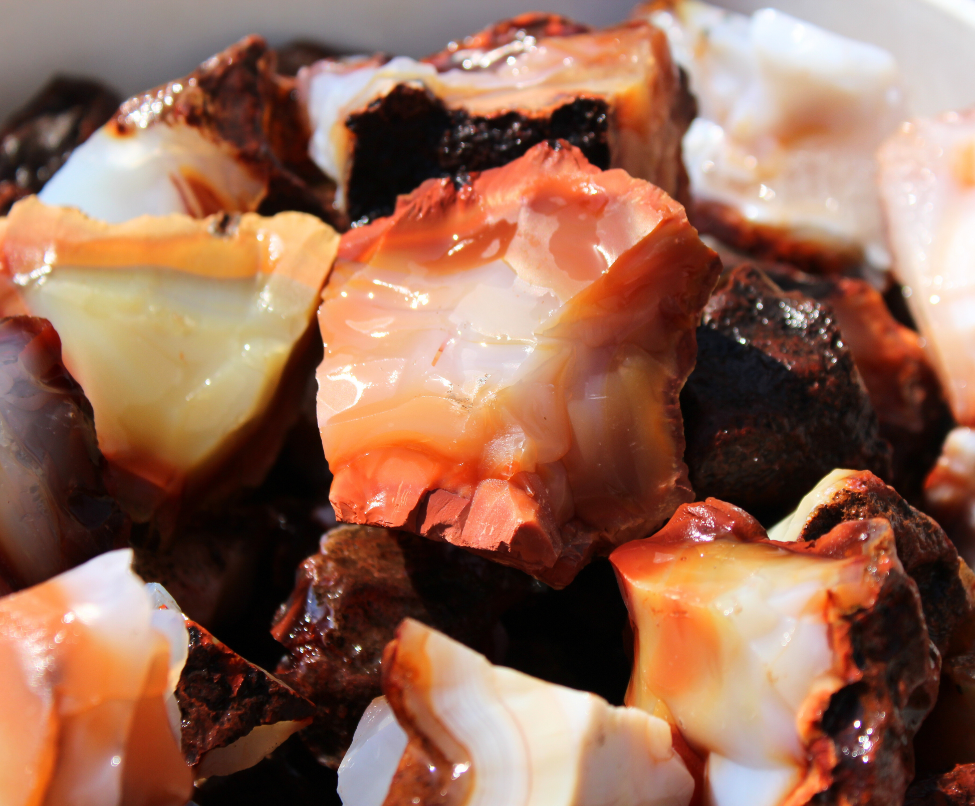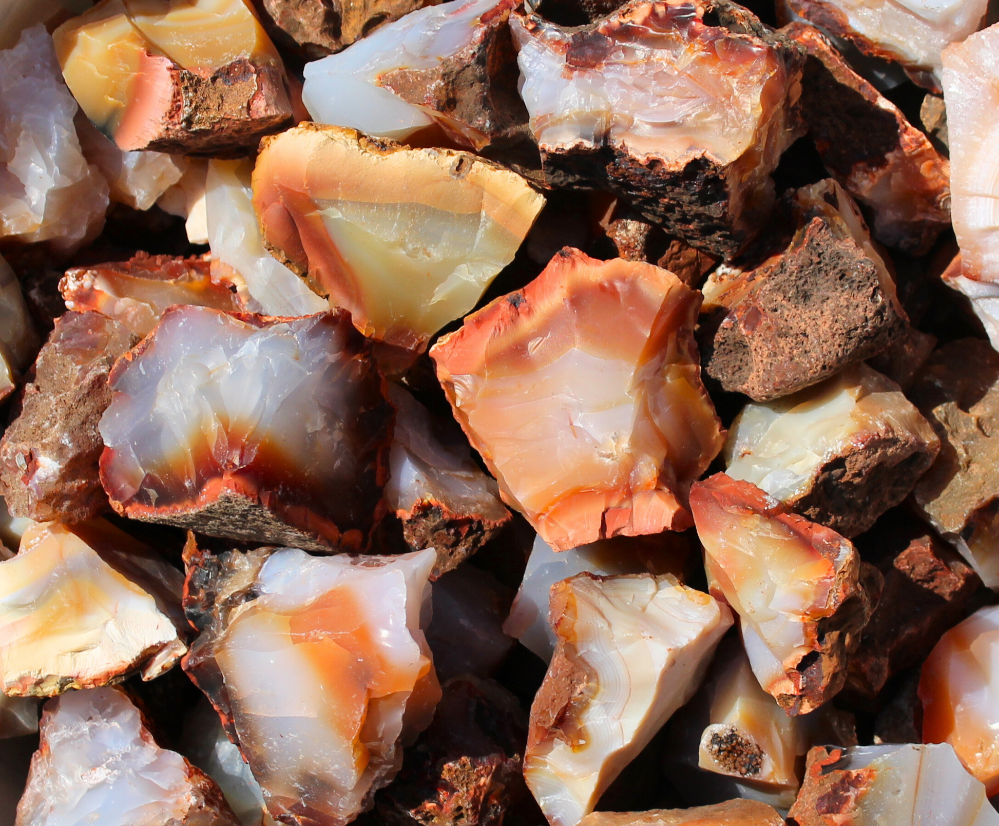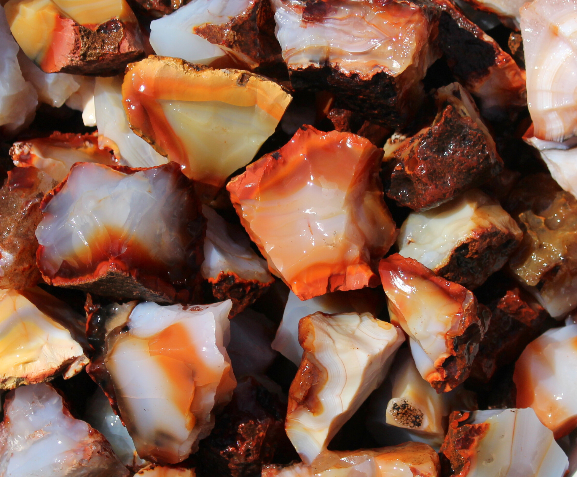 Carnelian is relatively fracture free and a great rock for tumbling. These rocks will have a great polish.