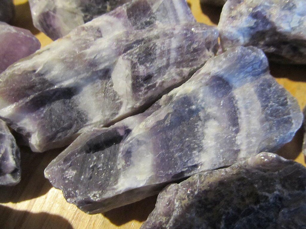 Use the drop-down to select either 1/2 pound, 1 pound or 3 pounds of rough Chevron Banded Amethyst stones! The photos are representative of the stones you will receive and are shown wet to give you a better idea of the color and how the rocks will look once polished.