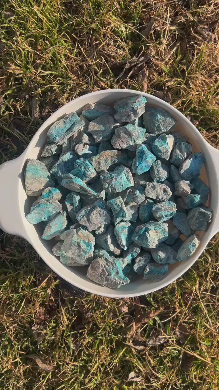 These raw Chrysocolla stones form Peru are a vibrant blue/green color that are gorgeous when wet! Use the drop-down menu to select either 1 piece, 1/2 pound, 1 pound, or 3 pounds! The photos are representative of the stones you will receive and are shown dry to reflect natural state and wet to reflect how they'll look once polished.