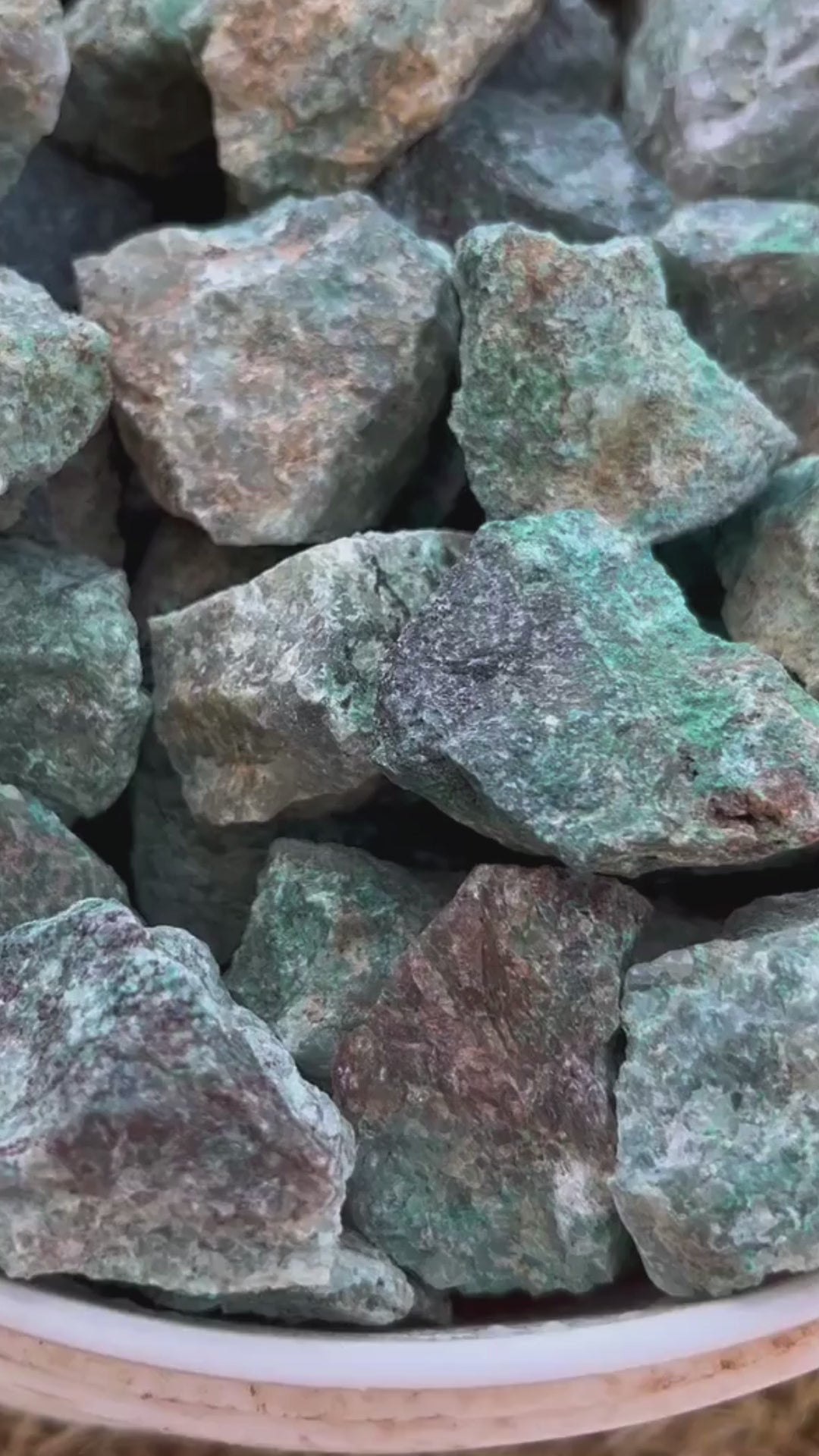 Use the drop-down menu to select either 1/2 Pound, 1 Pound, 3 Pounds or 5 Pounds of Chrysocolla raw stones! The photos are representative of the stones you will receive and are shown wet in picture 1 to reflect post tumbling/polished state and dry in picture 2 to show natural state.
