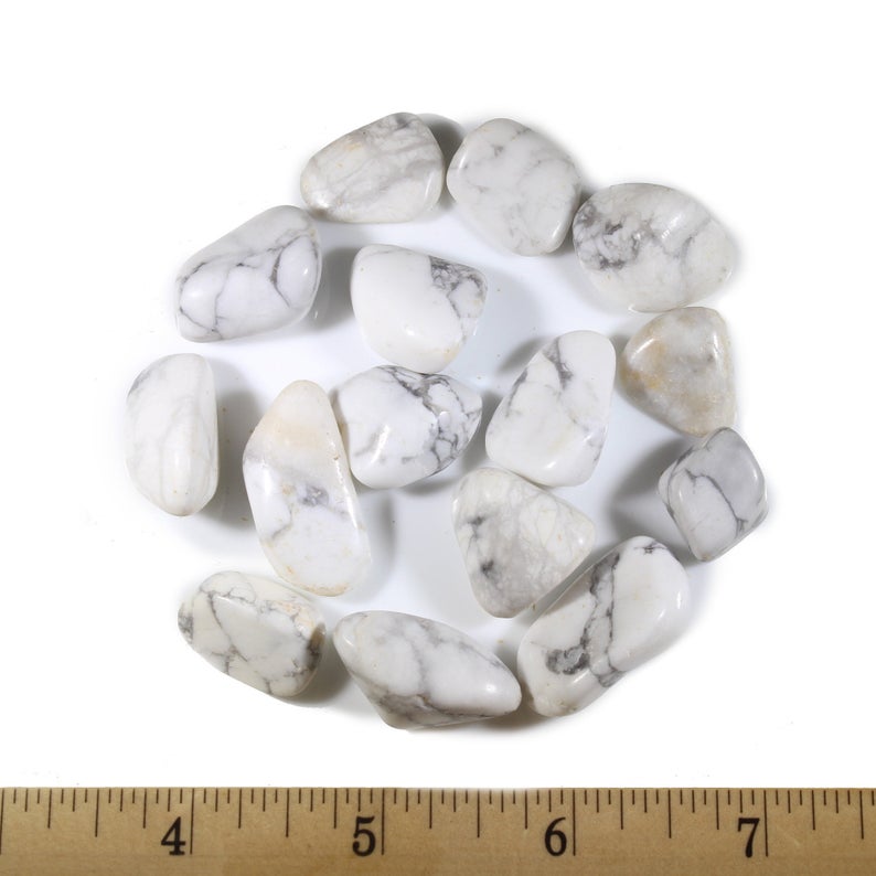 Use the drop-down to select either 1 Stone, 5 Stones, 1/4 LB, 1/2 LB or 1 LB of tumbled Howlite gemstones! This Magnesite rock is typically substituted for Howlite. They look almost identical in appearance but have a different chemical composition.