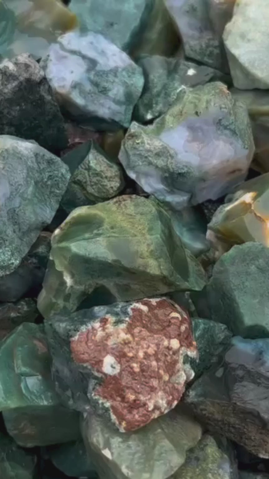 Use the drop-down menu to select either 1/2 pound, 1 pound, or 3 pounds of rough Moss Agate stones! The photos are representative of the stones you will receive and are shown wet to give you a better idea of the color and how the rocks will look once polished.