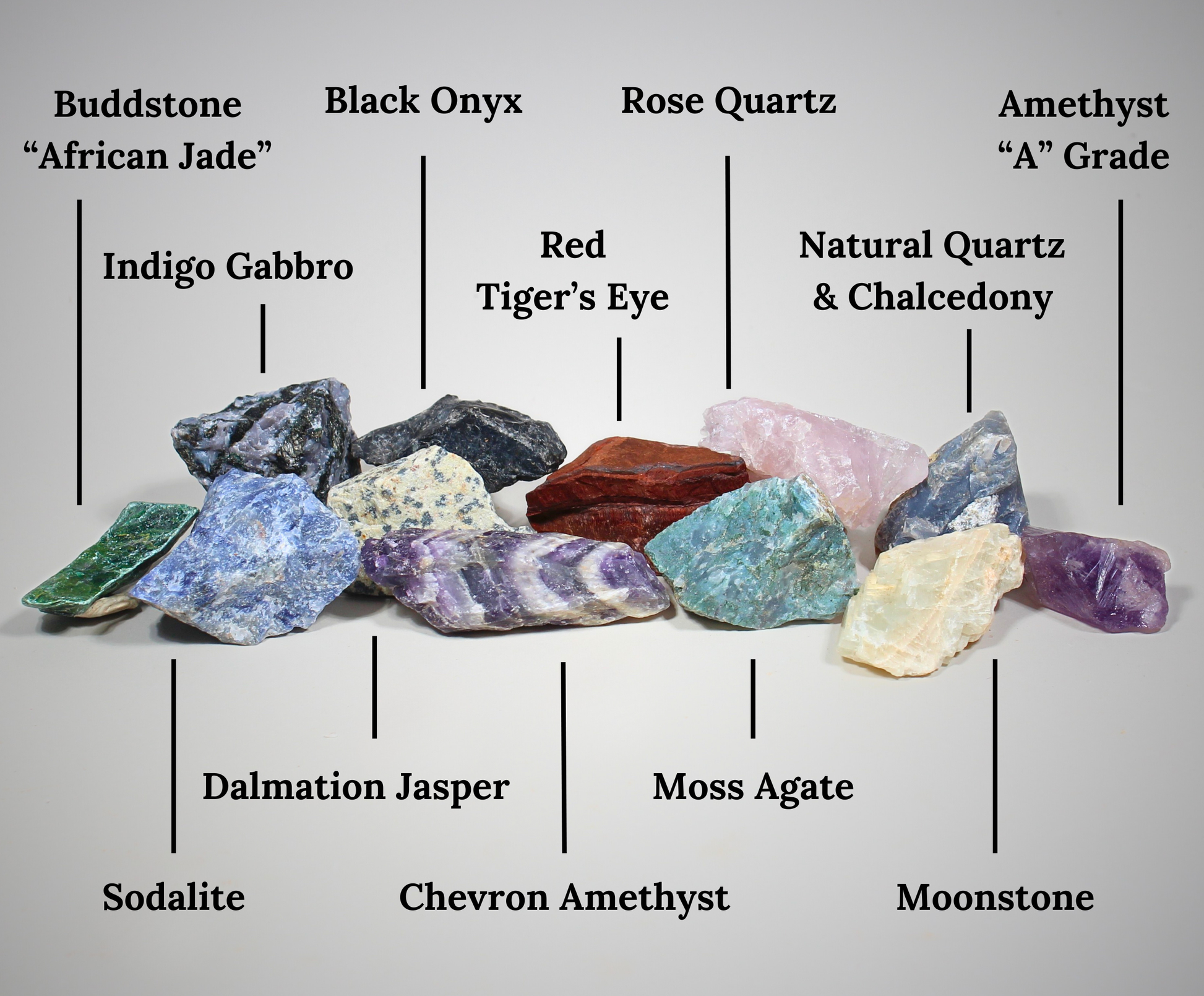 *We hand pick our rocks to offer high quality stones at a fair price. While we cannot guarantee a certain number of each variety of stone with your order, you can expect in orders of 1 LB or more to receive at least one piece of each variety in this 12 piece mix.
