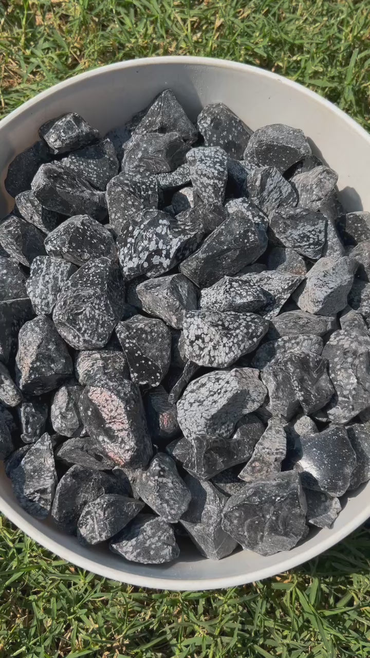Select rough Snowflake Obsidian stones by the 1/2 LB, 1 LB or 3 LBs! The first photo shows the stones wet and the second picture shows them dry. The stones are shown wet to give you a better idea of the color and how the rocks will look once polished.